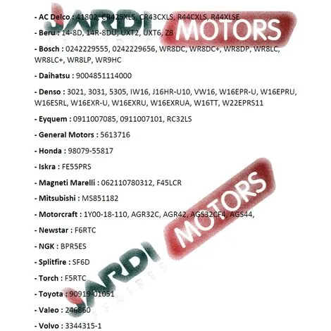 Bougie d’allumage Champion RN11YC pour moteur 4 temps à soupapes en tête monté sur des moteurs de tondeuse très connues chez Honda comme les moteurs GC135, GC160, GCV135, GCV140, GCV160… (autres modèles possibles de la marque, à vérifier) mais également sur d’autres marques de moteur. La bougie d’allumage Champion RN11YC répond aux exigences des fabricants de moteur comme Honda, Kubota, General Motors, Volvo, Mitsubishi Correspondances NGK BPR5ES, Honda 98079-55817, Torch F5RTC, Denso W16EPR-U, W16EXR-U… (autres correspondances sur notre tableau, voir photo)
